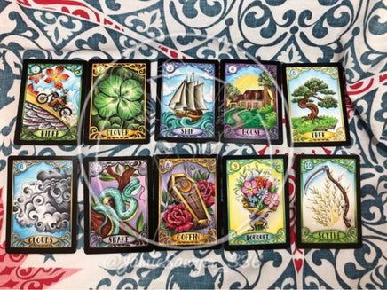 Take a ride through the grand tableau of Lenormand, with the colorful vision of tattoo artist, Jamie Sawyer.