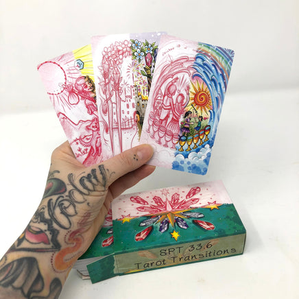 The blended deck featuring half artwork from Tarot 33.6 and half from Sawyer’s Path, A Tarot Journey. This deck was created as a happy accident; because when creating the guidebook images for the box set— I knew I needed them as more than just pictures upon a page. This is a limited edition deck, a one time printing of 500 copies.