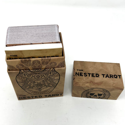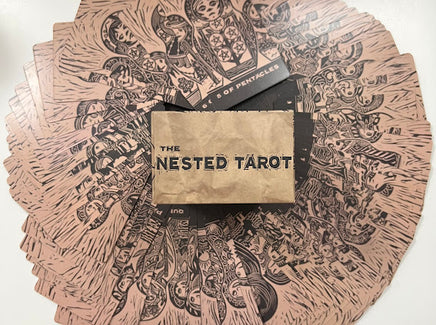 Nested Tarot features 78 cards in a 2 piece upright box complete with a 96 page guidebook based off of my own word map scans.