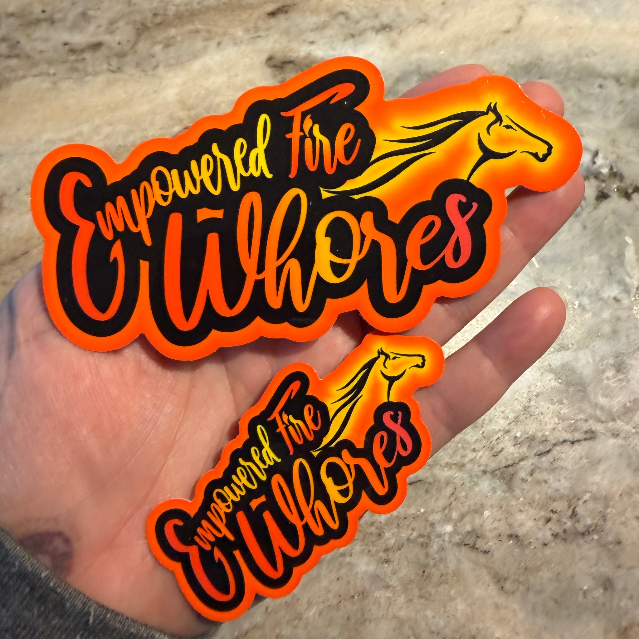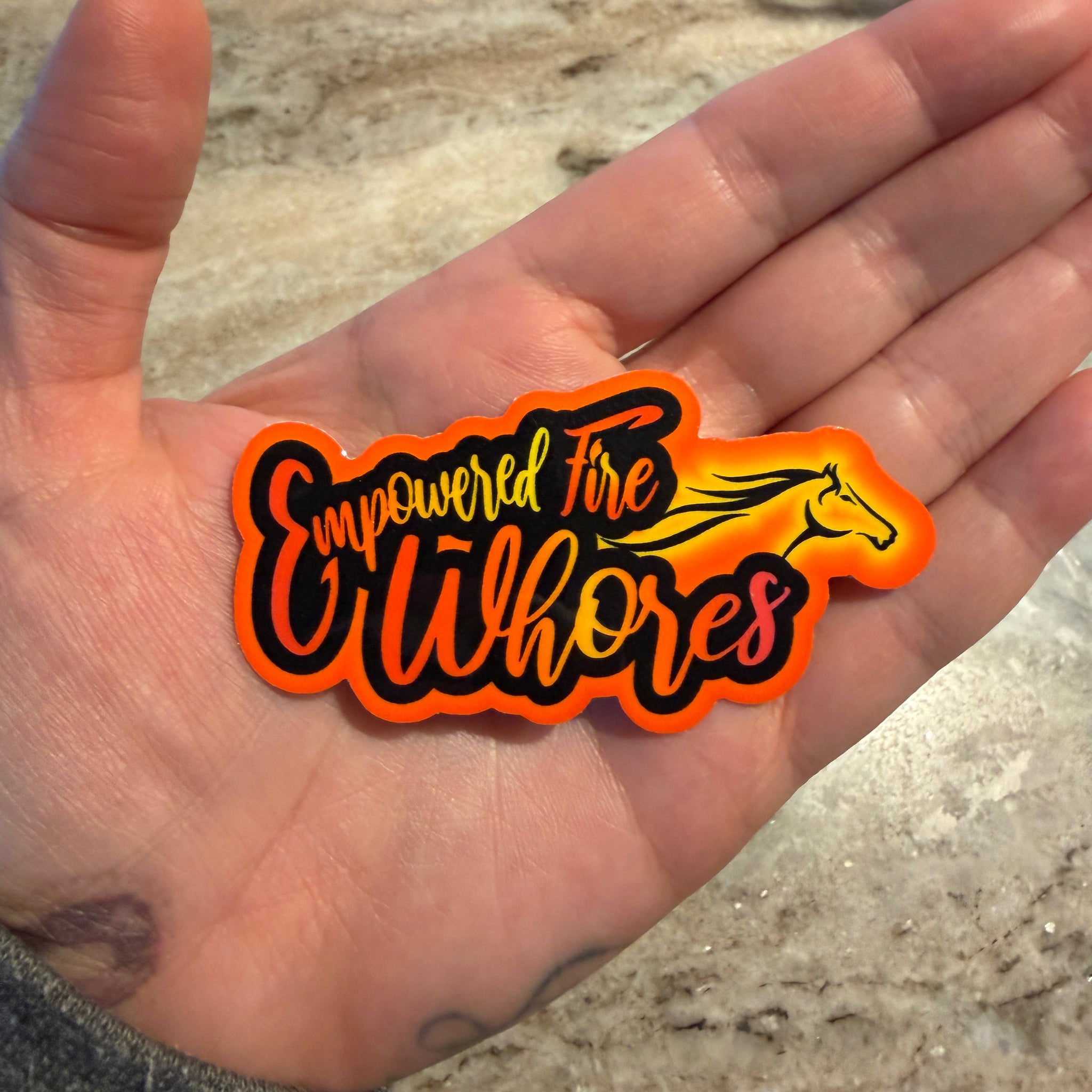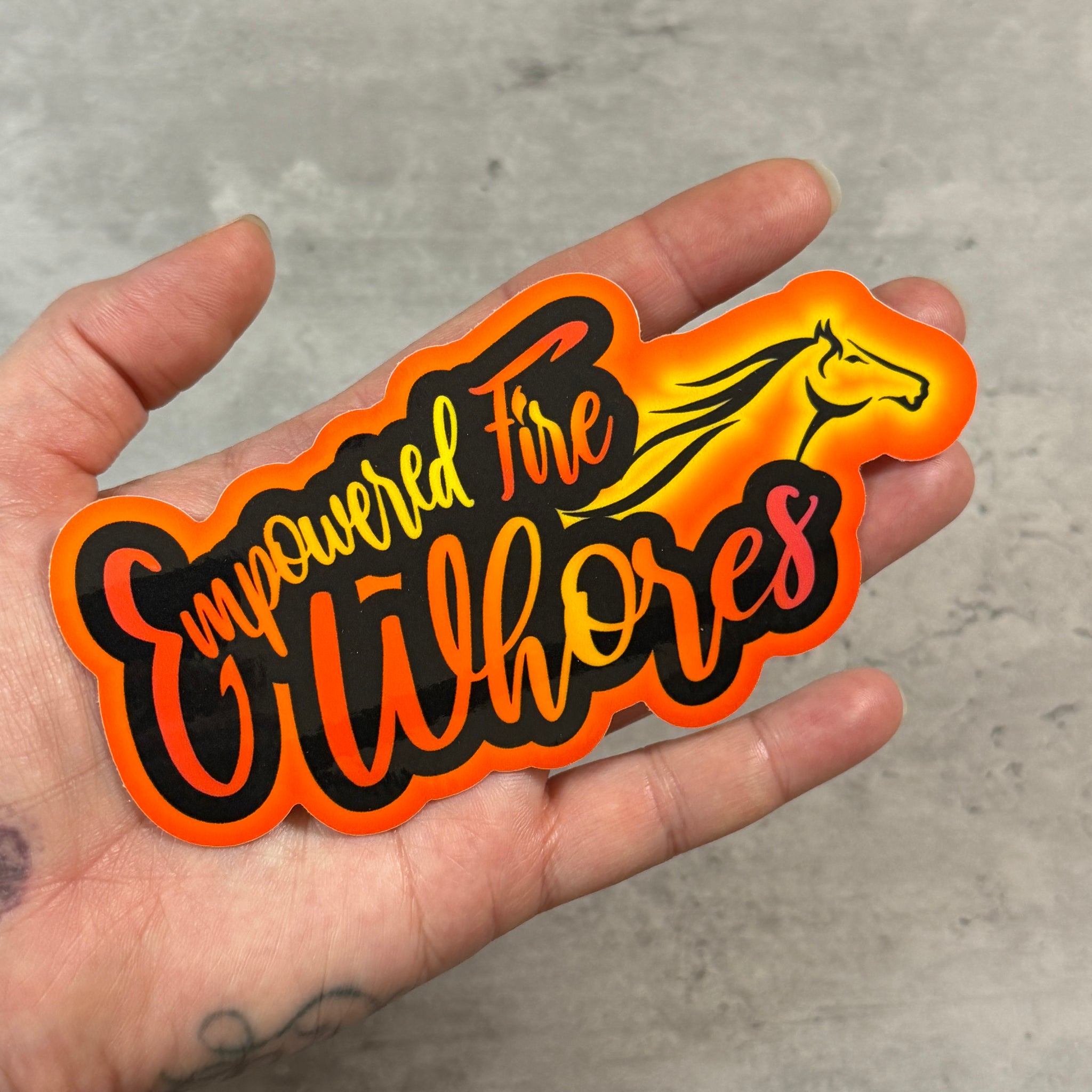 What started out as a joke with a friend about the upcoming Year of the Fire Horse (2026) took a turn when it met up with feminine rage… Let everyone know you’ve had enough and are ready to set things ablaze with this “Empowered Fire Whores” statement sticker.