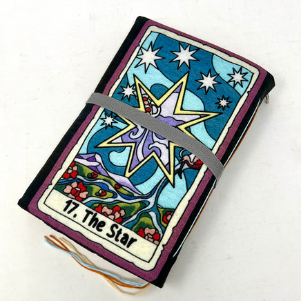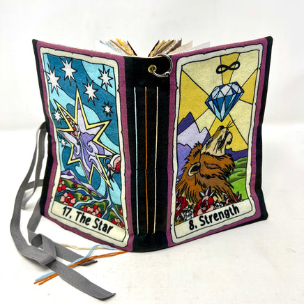 Take your journaling to the next level with this hand-made soft-cover journal! Featuring custom printed fabric with scanned artwork from the Felt Tarot.