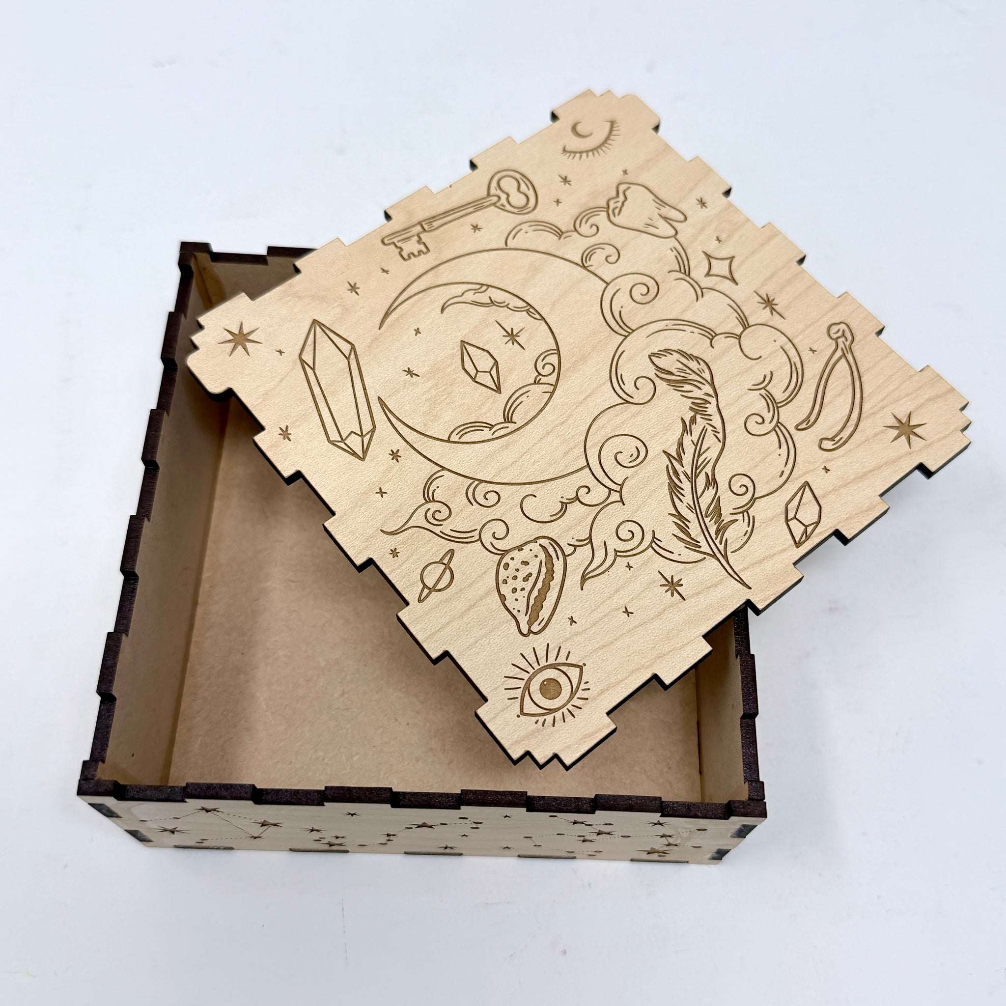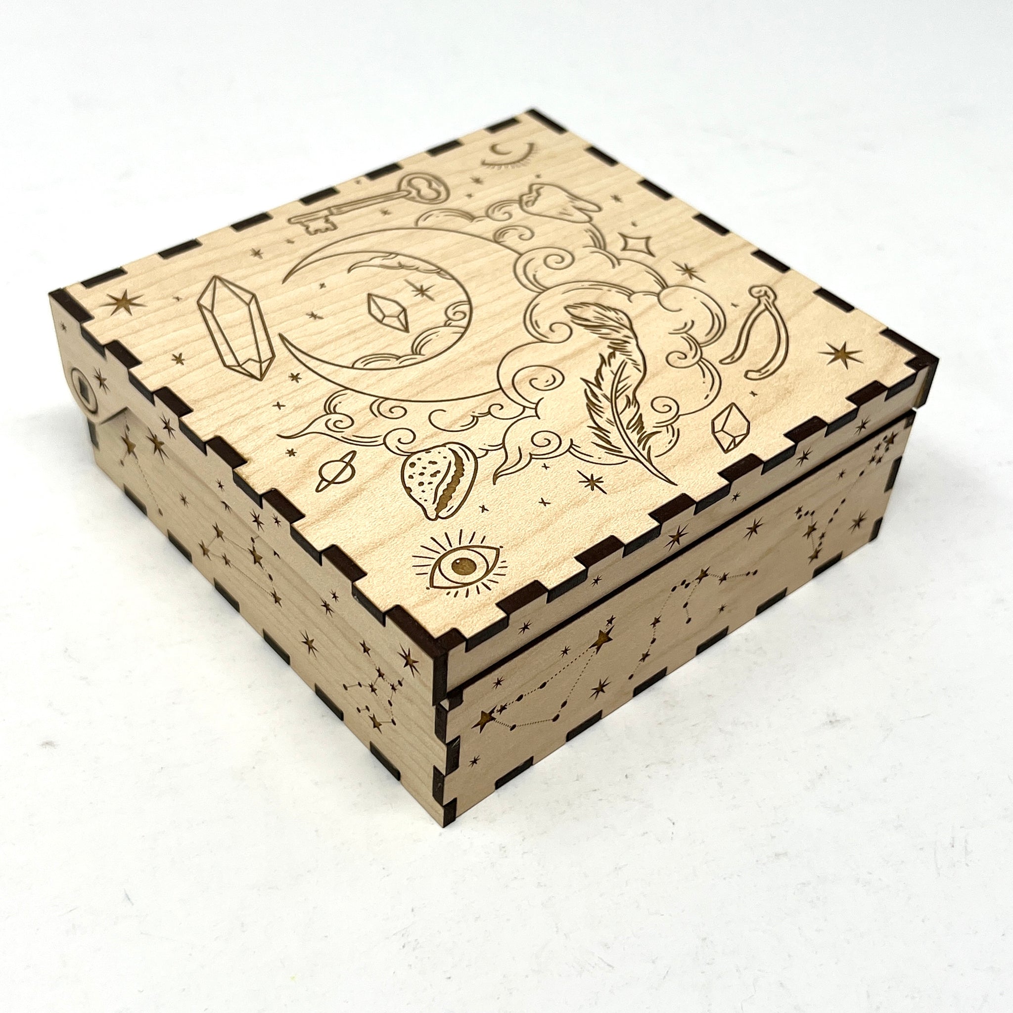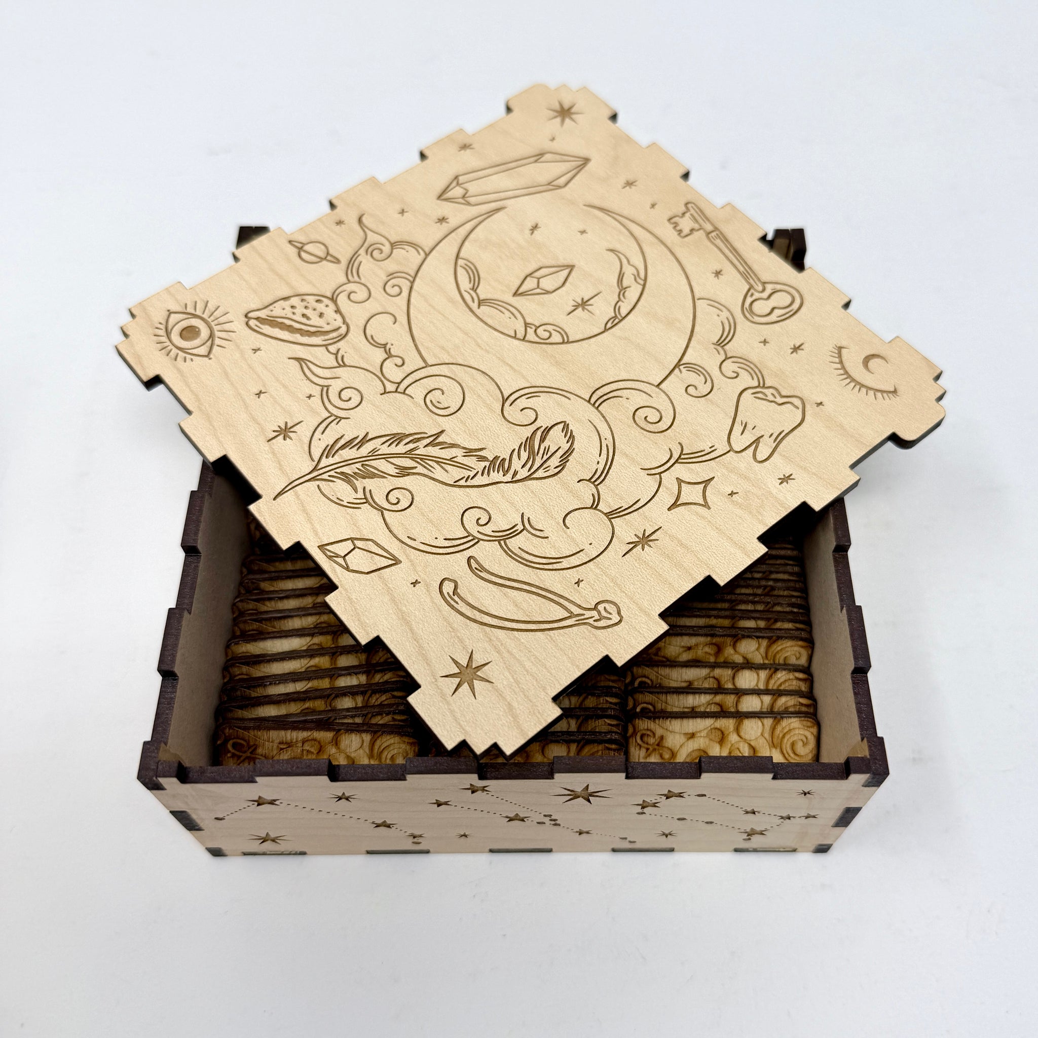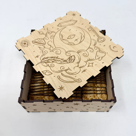 I created this box initially as an add-on for our full set of 78 Tiny Tarot Tiles, however, I realized it’s perfect for charms, odd sized decks or storing any other magical tools!