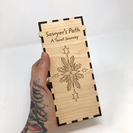 •Newly designed laser engraved puzzle style box featuring the Star and Crystal Mandala from the Sawyer’s Path Tarot Deck box.