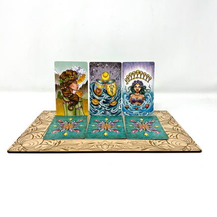 Pour moi, la grande carte centrale représente l'énergie globale de la lecture, puis chaque carte placée autour d'elle m'aide à raconter intuitivement une histoire ou à transmettre un message collectif. N'hésitez pas à utiliser cette carte large à votre manière intuitive. J'ai hâte de voir ce que vous allez inventer ! Le Tarot, Lenormand Tiles, Nature's Portal cartes et les tuiles sont vendus séparément, s'il vous plaît voir mes autres annonces pour ceux.