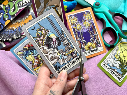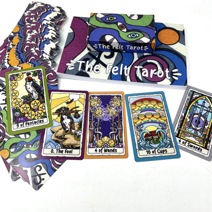 Tout d'abord, les cartes que vous recevrez ne seront PAS en feutre. Elles sont faites d'encre et de papier, comme un jeu de tarot classique. J'ai utilisé du feutre pour les couleurs et du vinyle floqué pour les lignes. Une fois terminées, elles ont été numérisées et transformées en modèle de jeu de tarot fonctionnel.