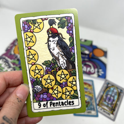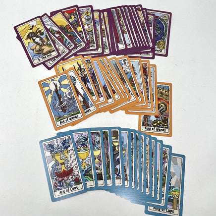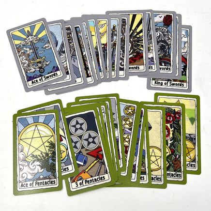 Chaque image de carte était initialement un grand panneau de feutre, fabriqué à la main avec soin, sans IA. Il a fallu entre 10 et 15 heures pour créer les panneaux, de la conception à la découpe. Les panneaux ont ensuite été numérisés et intégrés à l'ordinateur afin de servir de modèle pour un jeu de tarot exploitable.