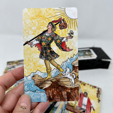 Les cartes de cette version sont sans bordure et non numérotées. À la place, vous trouverez de légers mandalas à l'arrière-plan, avec des numéros et des correspondances astrologiques ou élémentaires. Les personnages ont également été légèrement revisités pour refléter le monde dans lequel nous vivons. Ils apparaissent comme de nouveaux acteurs dans ce monde familier.