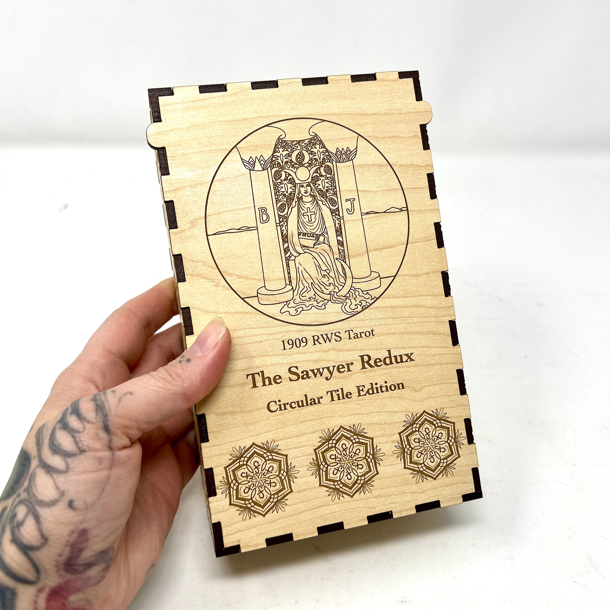 each box features the same image as the card backs with an updated image of the High Priestess on the top.