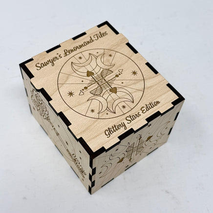 Also a newly designed laser engraved puzzle style box featuring the new Lenormand sigil.