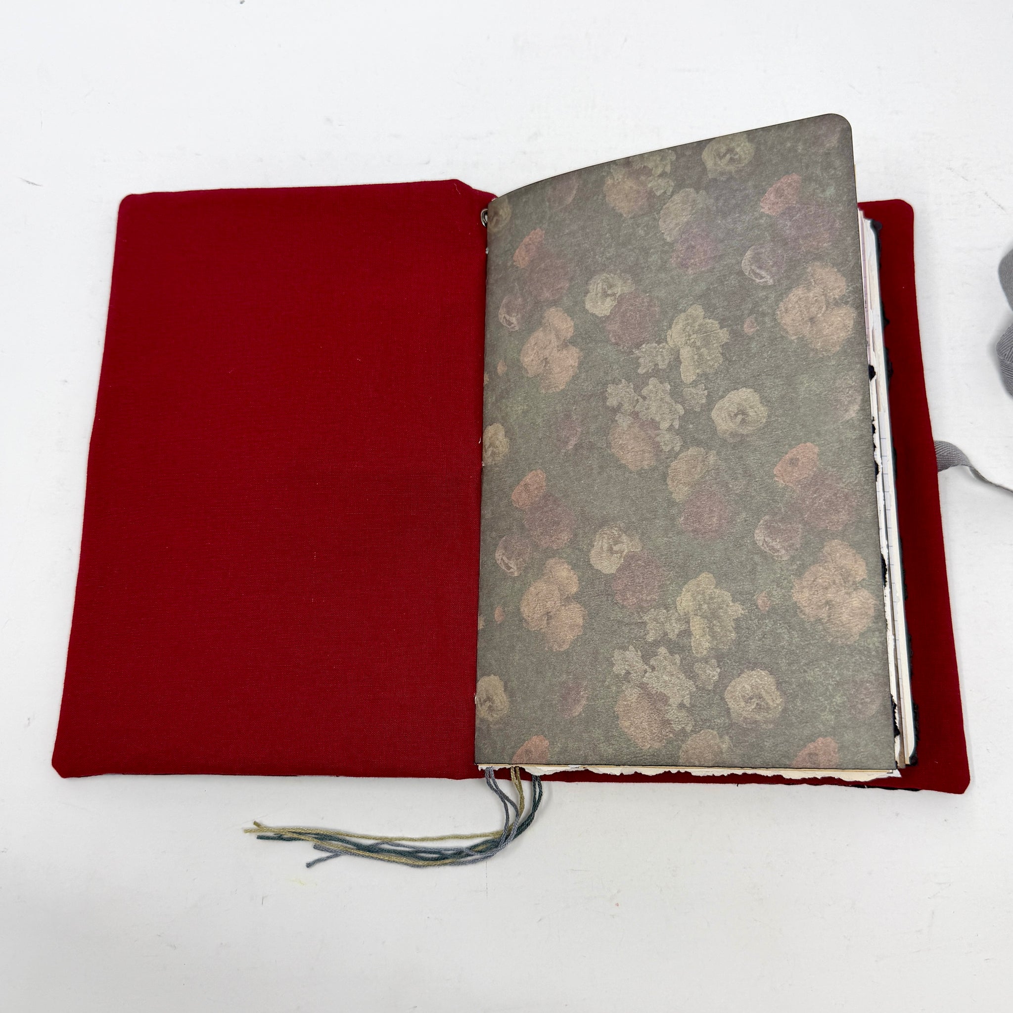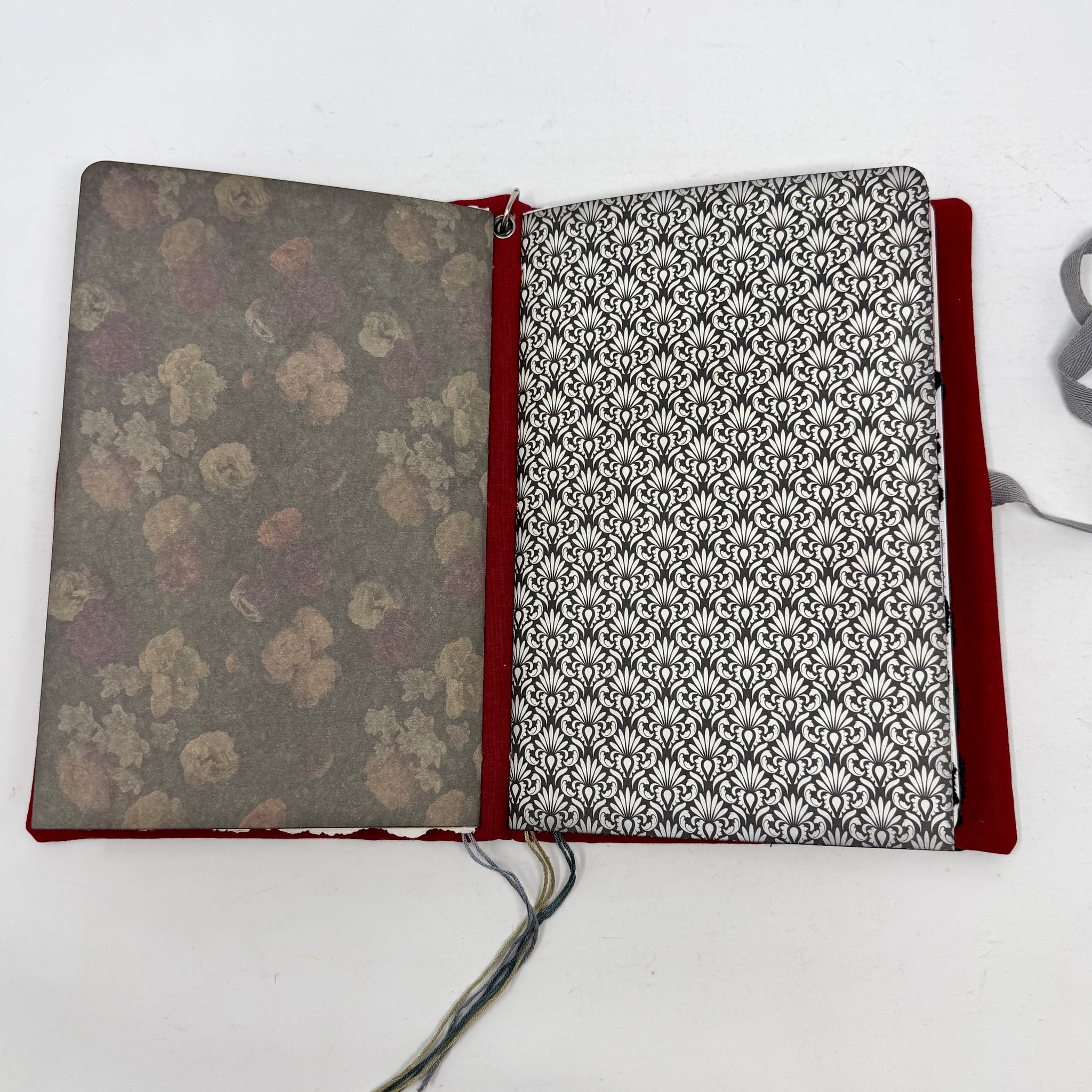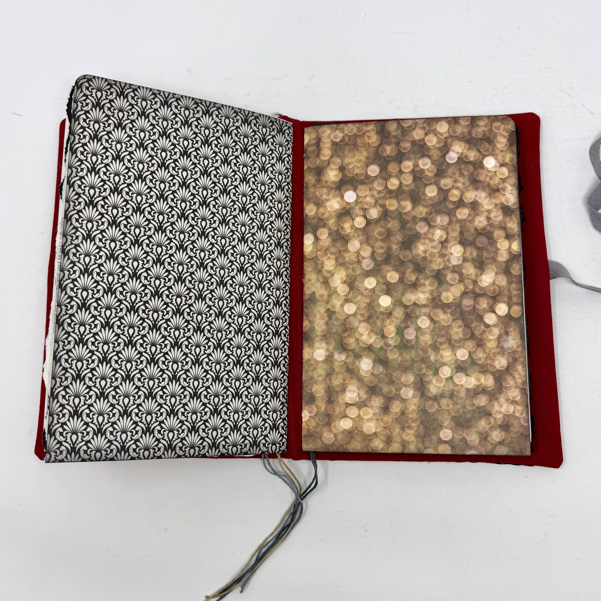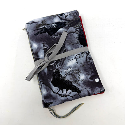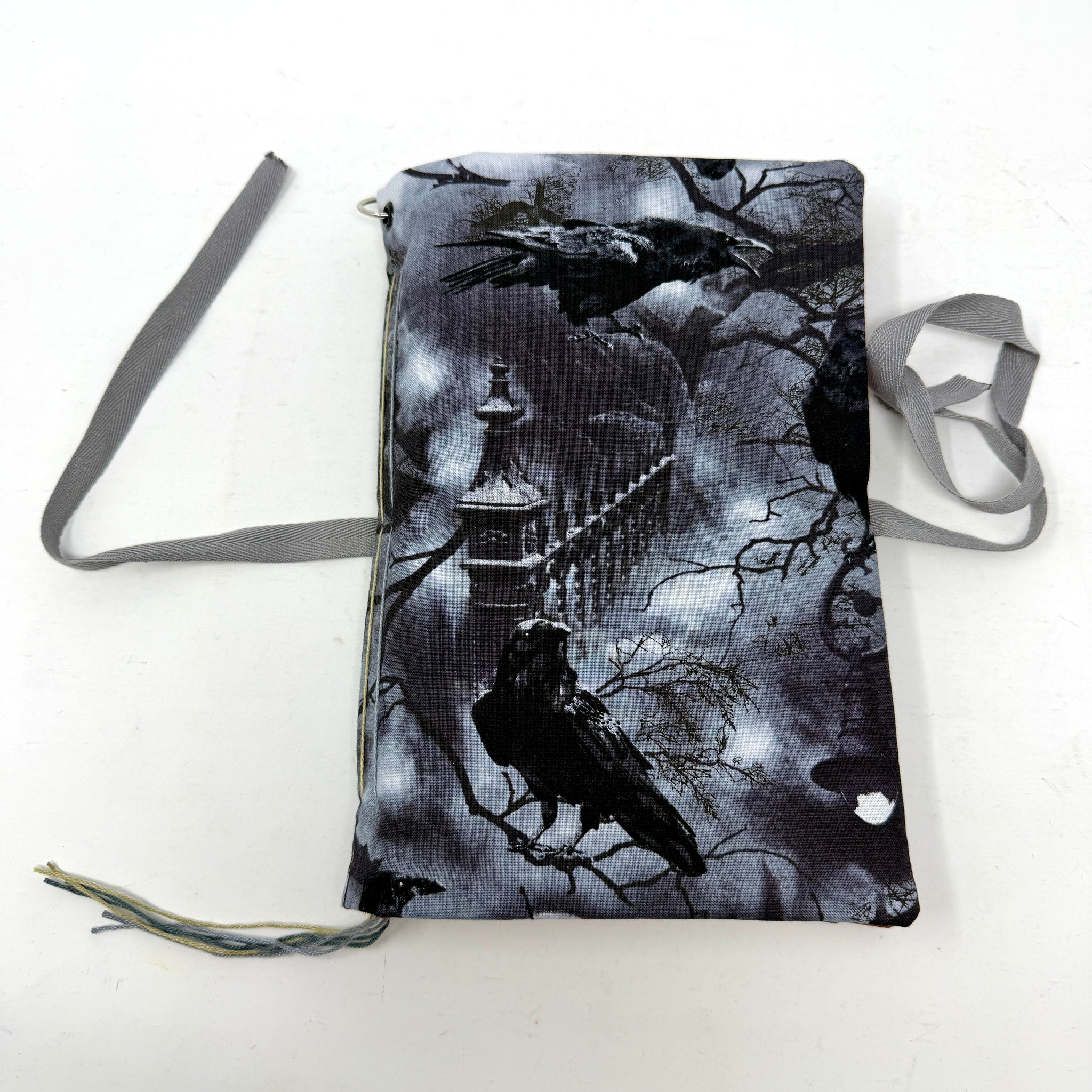 Take your journaling to the next level with this hand-made soft-cover journal! Featuring fabric depicting Ravens and lampposts.
